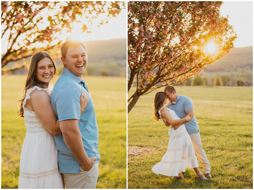 For the sunset hour, we headed to Ethan’s grandfather’s land! When I stepped out of my car and saw this beautiful pink tree in full bloom, I could not contain my excitement! I told Kaylee and Ethan, “Oh my goodness, I have to put y’all in front of this tree!!” It was so dreamy! (Side note: Spring in Huntsville is absolutely beautiful! I feel so blessed to shoot in so many beautiful locations!)